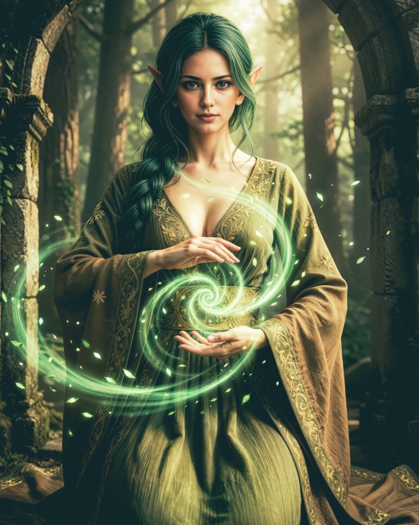 Zar-Narra masters nature energy in its most ancient living form. She does not cast spells at the forest. She converses with it. Living things come to her. Unicorns walk toward her outstretched hand. Ancient trees lean toward her voice. The forest does not merely tolerate her presence. It orients toward her.
