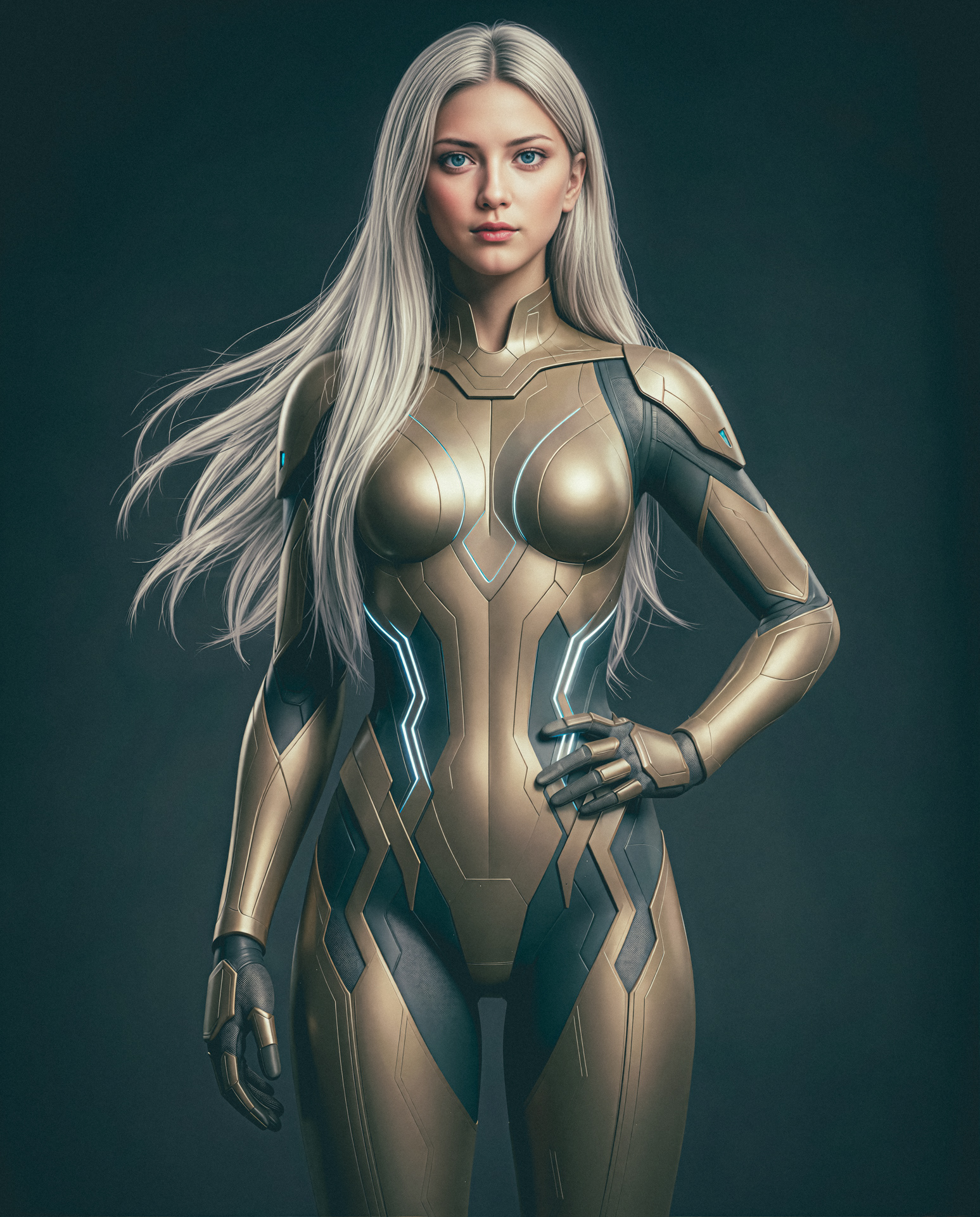 Through a rare and successful fusion with Ascentrove technology, she bonded with Infinity, a top-tier AI capable of shifting into ethereal energy states and synchronising flawlessly with its host. This fusion grants her enhanced capabilities including Matter Conjuration, Advanced Cell Regeneration, Real-Time Tactical Awareness, and more.